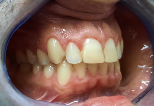 Tenemos bruxismo que se puede evidenciar de dos formas, ya sea apretando o rechinando los dientes superiores contra los inferiores de manera involuntaria.